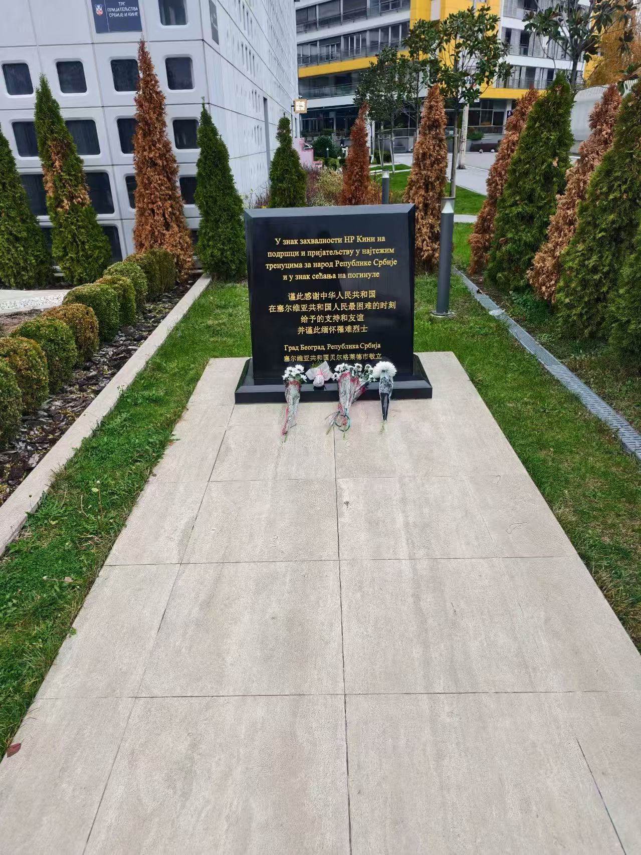 సైట్ వద్ద, బృంద సభ్యులు గతాన్ని ప్రతిబింబిస్తూ "హౌనర్ అమరవీరులు, శాంతిని కాపాడుకోండి" అని రాసి ఉన్న స్మారక చిహ్నం ముందు గంభీరంగా నిలబడి ఉన్నారు. సంక్షోభ సమయాల్లో చైనా మరియు సెర్బియా మధ్య భాగస్వామ్య బంధాన్ని రికార్డ్ చేస్తూ చైనీస్ మరియు సెర్బియా టెక్స్ట్తో చెక్కబడిన నల్లని స్మారక చిహ్నం చుట్టూ తాజా పువ్వులు మరియు చైనీస్ జాతీయ జెండాలు ఉన్నాయి-కాలమంతా గౌరవానికి చిహ్నాలు. "ఇక్కడ ఉండటం వల్ల శాంతి విలువ మరింత స్పష్టంగా కనిపిస్తుంది" అని జట్టు నాయకుడు పేర్కొన్నాడు. "ఈ అమరవీరులు తమ ప్రాణాలతో కాపాడిన శాంతి, జీవితాలను రక్షించడానికి వైద్య నిపుణులుగా మా మిషన్కు పునాది."